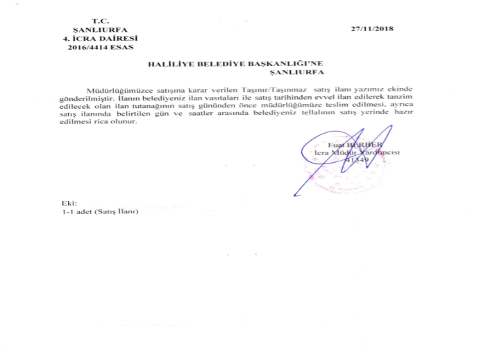 ŞANLIURFA 4.İCRA DAİRESİNİN 2016/4414 ESAS SAYILI İLAN METNİ İÇİN TIKLAYINIZ