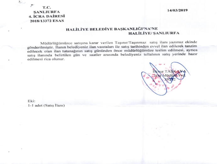 ŞANLIURFA 4.İCRA DAİRESİNİN 2018/13372 ESAS SAYILI İLAN METNİ İÇİN TIKLAYINIZ