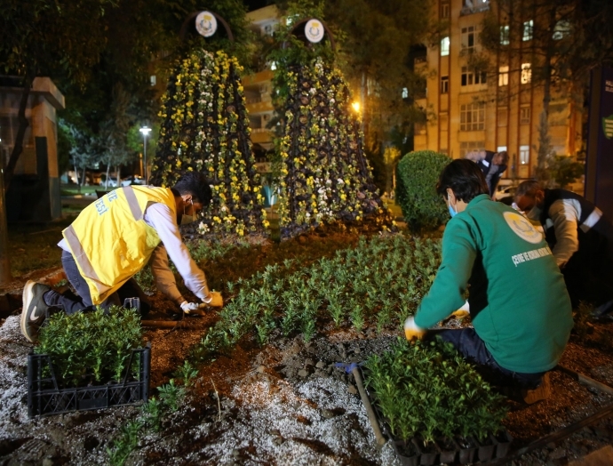 Çevre Koruma ve Kontrol Müdürlüğü, “Yeşilin ve doğanın kalbi Haliliye” sloganıyla peyzaj çalışmalarını mevsimsel şartlara uygun şekilde devam ettiriyor. Belediye Başkanı Mehmet Canpolat’ın talimatlarıyla yürütülen çalışmalar kapsamında Ramazan Ayı dolayısıyla mesaisini gündüz ve gece vardiyasıyla yürüten Çevre Koruma ve Kontrol Müdürlüğü, parklarda peyzaj çalışmaları kapsamında mevsimsel çiçek dikimlerini gerçekleştiriyor. Peyzaj çalışmalarının yanı sıra ekipler, bakım ve onarım çalışmalarıyla da parklardaki eksiklikleri gideriyor.