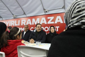 Haliliye Belediye Başkanı Mehmet Canpolat ve AK Parti Şanlıurfa Milletvekili Cevahir Asuman Yazmacı de iftar çadırında vatandaşlarla bir araya gelerek aynı sofrayı paylaştı.