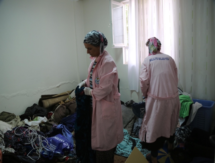 Haliliye Belediyesi Sosyal İşler Müdürlüğüne bağlı Evde Bakım Hizmeti ekipleri İpekyol Mahallesinde yalnız yaşayan Şemse Özcan’ın evinde yıllardır biriken çöpleri temizledi.