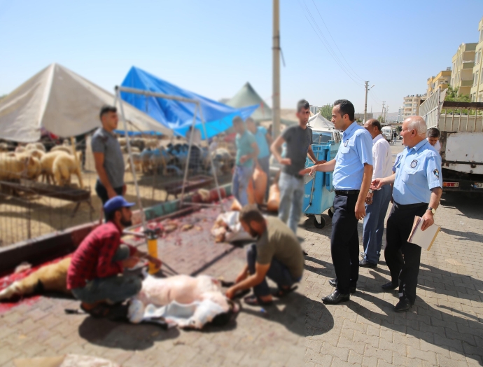 Haliliye Belediyesi Zabıta Müdürlüğü ekipleri, Kurban Bayramı dolayısıyla komisyonca belirlenen alanlar dışında kesim yapılmaması için denetimlerini bayram mesaisinde de yoğun şekilde devam ettiriyor. Ekipler, kaçan kurbanlıkların yakalanması için çalışmalarını sürdürüyor.