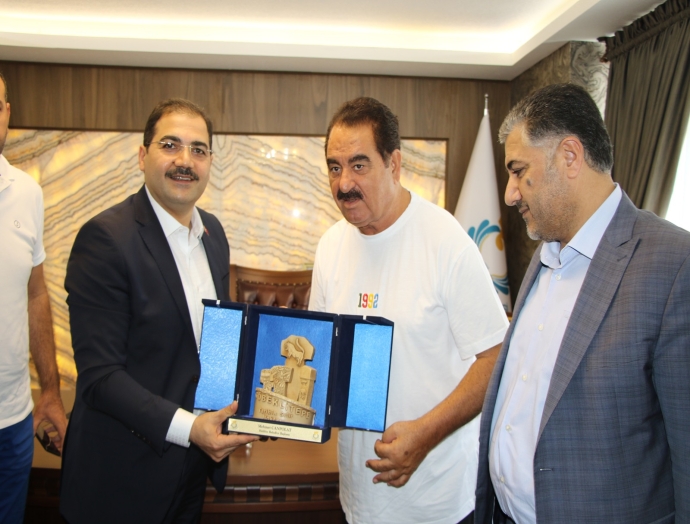 Sanatçı İbrahim Tatlıses Haliliye Belediye Başkanı Mehmet Canpolat’ı makamında ziyaret etti. Başkan Canpolat, Tatlıses’e müze ve Guinness Rekorlar Kitabı’na girmesi planlanan sıra gecesi müjdesi verdi.