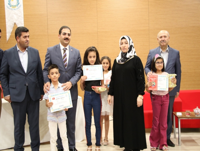 Recep Tayyip Erdoğan Kültür Merkezi’nde düzenlenen kitap okuma etkinliği sonrası okunan kitabın özeti üzerinden yapılan sınavda ilk üçe giren çocuklara ödülleri Belediye Başkanı Mehmet Canpolat, eşi Fethiye Canpolat ve Başkan Yardımcıları İhsan Ağca ve Mehmet Erol tarafından verildi.