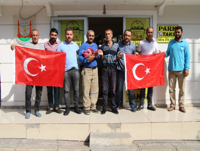 Haliliye Belediyesi, Barış Pınarı Harekatı’na destek kapsamında vatandaşlara Türk Bayrağı dağıttı.