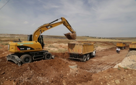 Haliliye Belediyesi Fen İşleri Müdürlüğü, Karşıyaka Mahallesi’nde imara açılan yerlerde yol açma çalışmalarını devam ettiriyor.