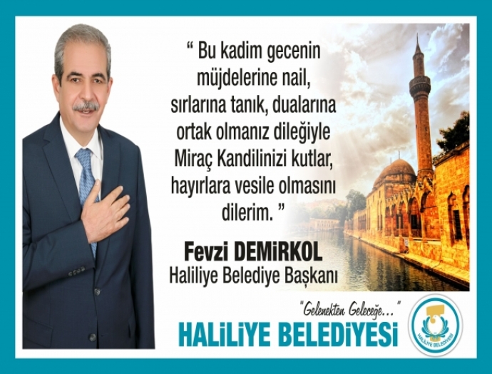 Haliliye Belediye Başkanı Fevzi Demirkol, 23 Nisan’ı, 24 Nisan’a bağlayan gece idrak edeceğimiz Miraç Kandili nedeniyle yayınladığı mesajında, tüm İslam Aleminin kandilini kutladı.