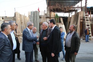 Başkan Fevzi Demirkol, beraberinde Başkan Yardımcısı Mehmet Selim Polatkan, Belediye Meclis Üyeleri Abdülkadir Altundağ ve Halil Yetkin ile birlikte Şanlıurfa Oduncular ve Keresteciler Sitesine gitti. Hızarcılar ve Kavakçılar Dernek Başkanı Hüseyin Akbıyık ve site esnafı tarafından karşılanan Başkan Demirkol, geçen 22 Ağustos’ta çıkan yangında yasar gören işyerlerinin bulunduğu alana geçti. Haliliye Belediyesi Fen İşleri Müdürlüğü tarafından yürütülen inşaat çalışmalarını yerinde inceleyen Başkan Demirkol, çalışmalara ilişkin de, teknik ekipten bilgiler aldı. Çalışmaların kısa sürede tamamlanarak, esnafın tekrar işini yapacağını söyleyen Başkan Demirkol, daha sonra esnafla da sohbet etti.