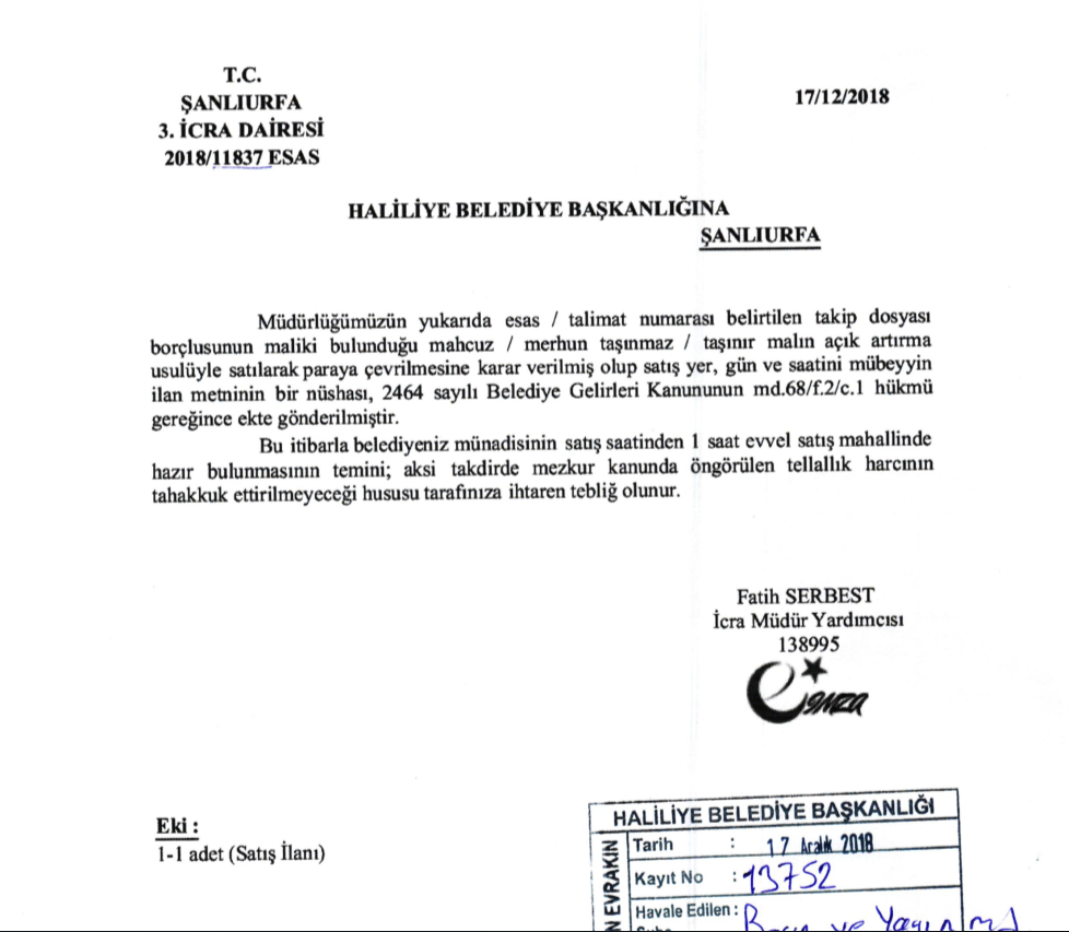 ŞANLIURFA 3.İCRA DAİRESİNİN 2018/11837 ESAS SAYILI İLAN METNİ İÇİN TIKLAYINIZ.