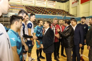 Maç sonrası Belediye Başkanı Mehmet Canpolat ve Haliliye İlçe Kaymakamı Metin Esen Haliliye Belediyespor ve Ziraat Bankası Voleybol Takımı sporcularını tebrik etti.