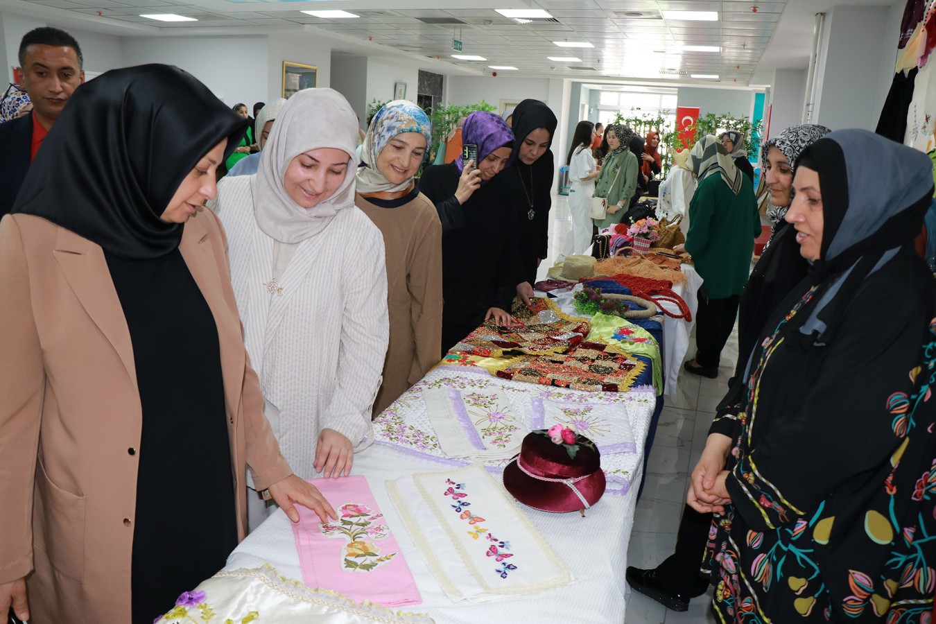Şanlıurfa İl Milli Eğitim Müdürlüğü ve Halk Eğitim Merkezi işbirliği ile Haliliye Belediyesi bünyesindeki Milletevlerinde üreten kursiyerlerin el emeği ürünleri sergilendi.
