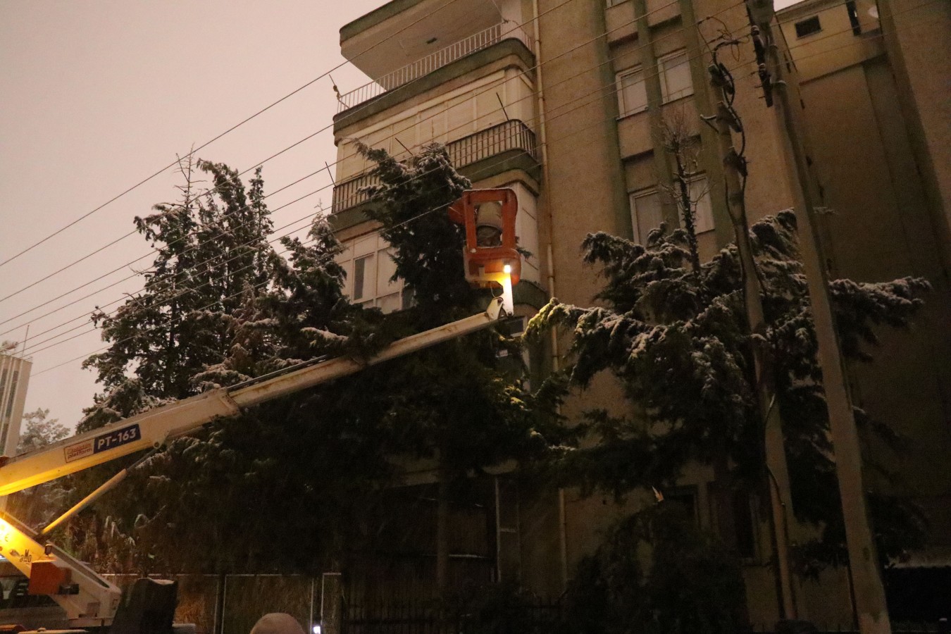 Kırsal Hizmetler Müdürlüğüne bağlı Çevre Koruma Ekibi, kar yağışı nedeniyle tehlike arz eden ağaçlara TEDAŞ ekipleriyle birlikte müdahale ederek budama çalışması yaptı. Bu kapsamda olası risklerin önüne geçilmesi sağlanırken, vatandaşların güvenliği için ekiplerin çalışmaları gece boyunca devam etti.